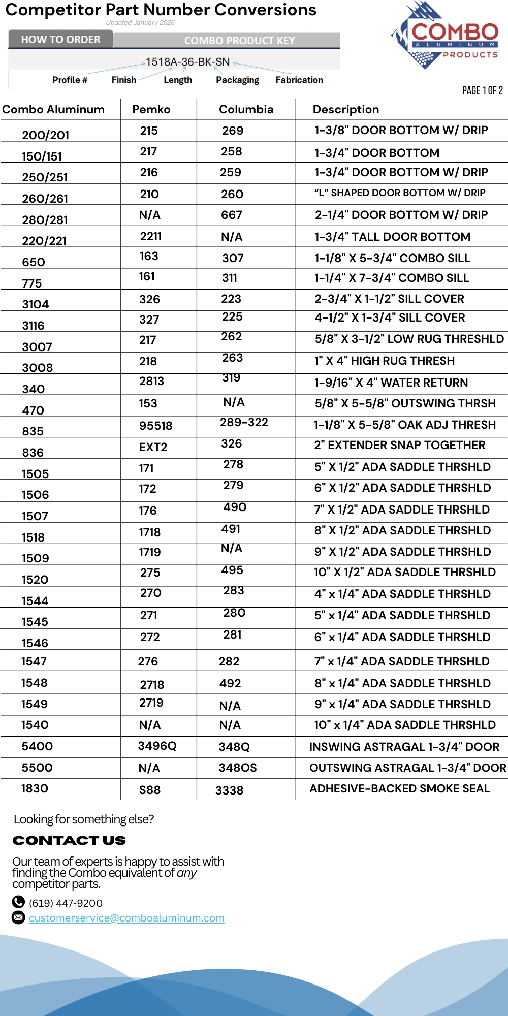 Part Number Conversion List